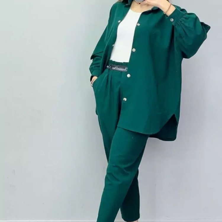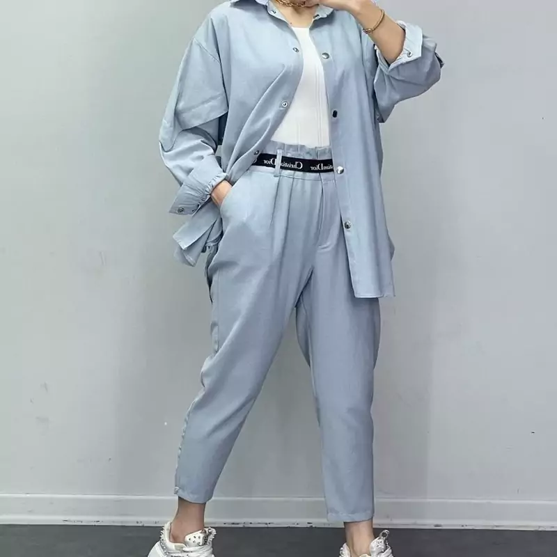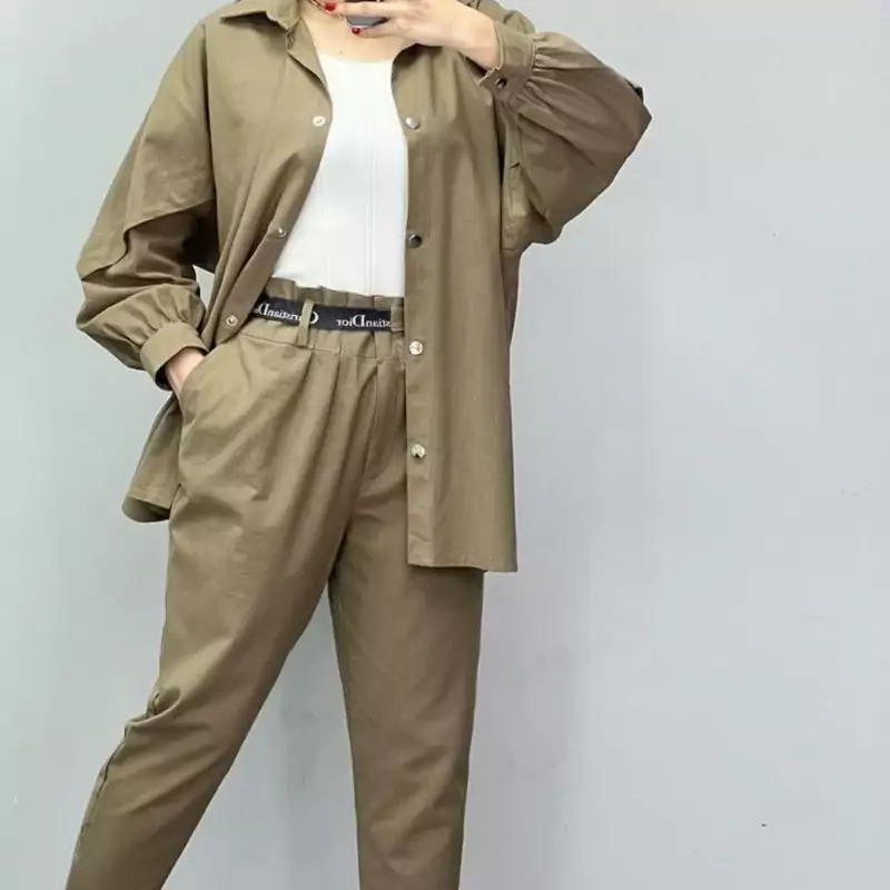 شومیز شلواربهاری مزون دوزی شده از جنس لنین