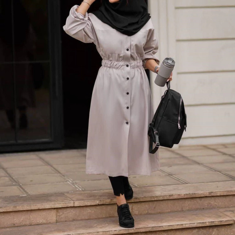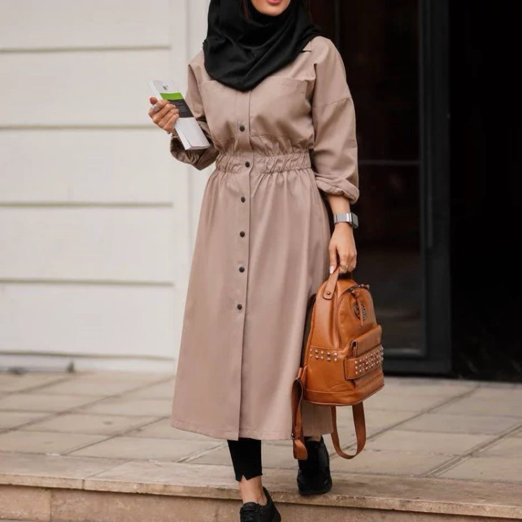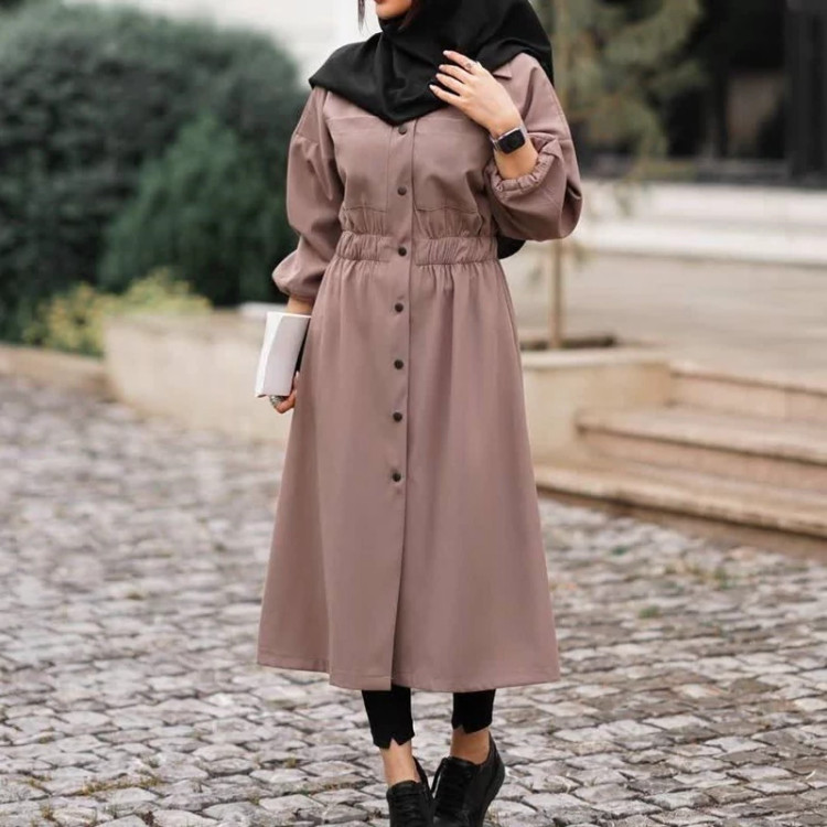 مانتو دانشجویی بلندکمرکش پارچه لنین
