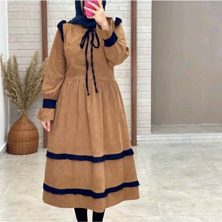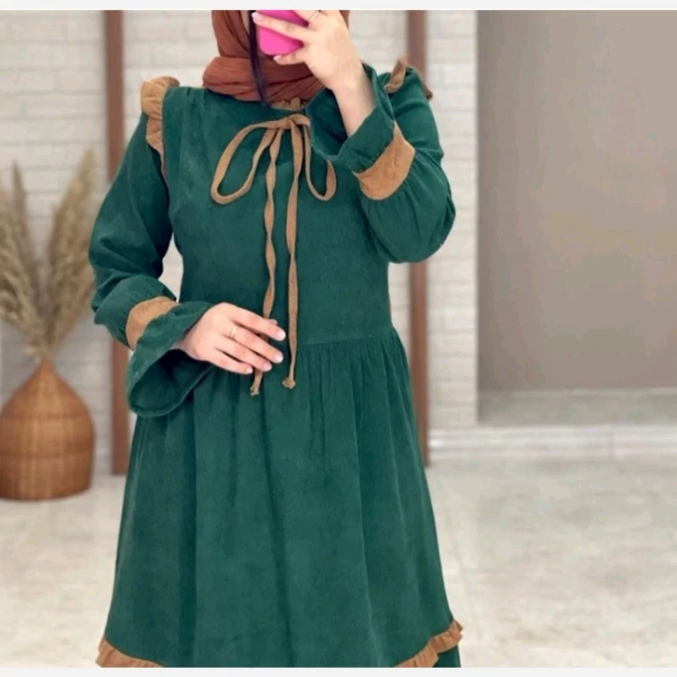 پیراهن سارافون دخترانه زنانه مزون دوزی شده پارچه کبریتی ریز